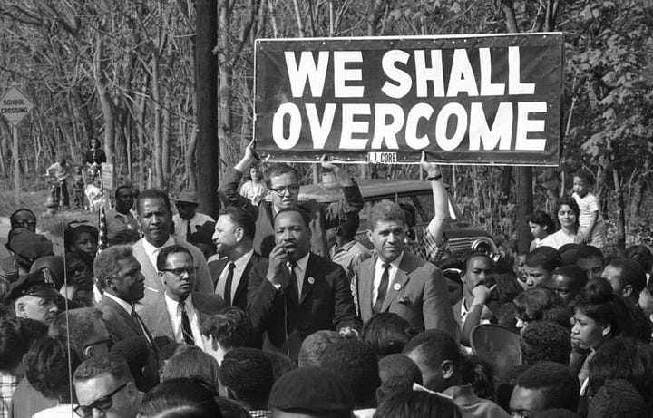 Below, I've shared the script of a presentation I've made these last two years with the Santa Monica Symphony at their annual Martin Luther King celebration. It's about the history of the protest song"We Shall Overcome” and how its rise in importance as a civil rights anthem is inseparably linked to Martin Luther King Jr.:
